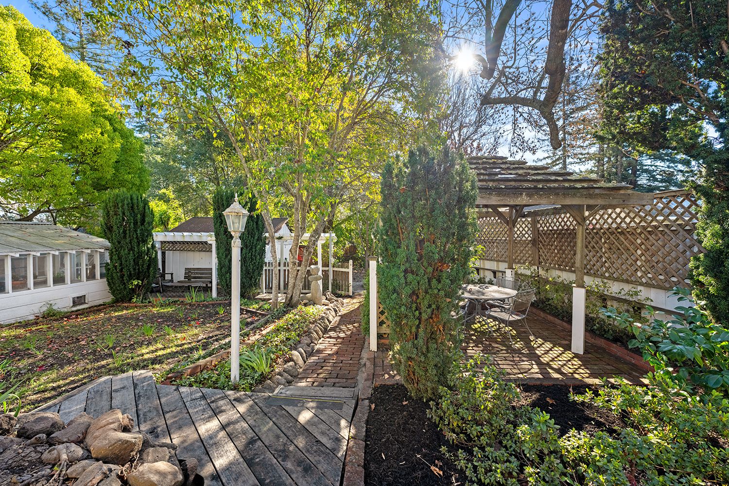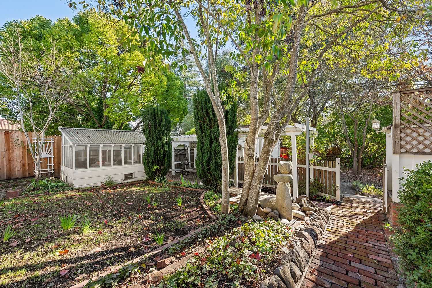 - Established ornamental and fruit trees, creating a peaceful garden setting